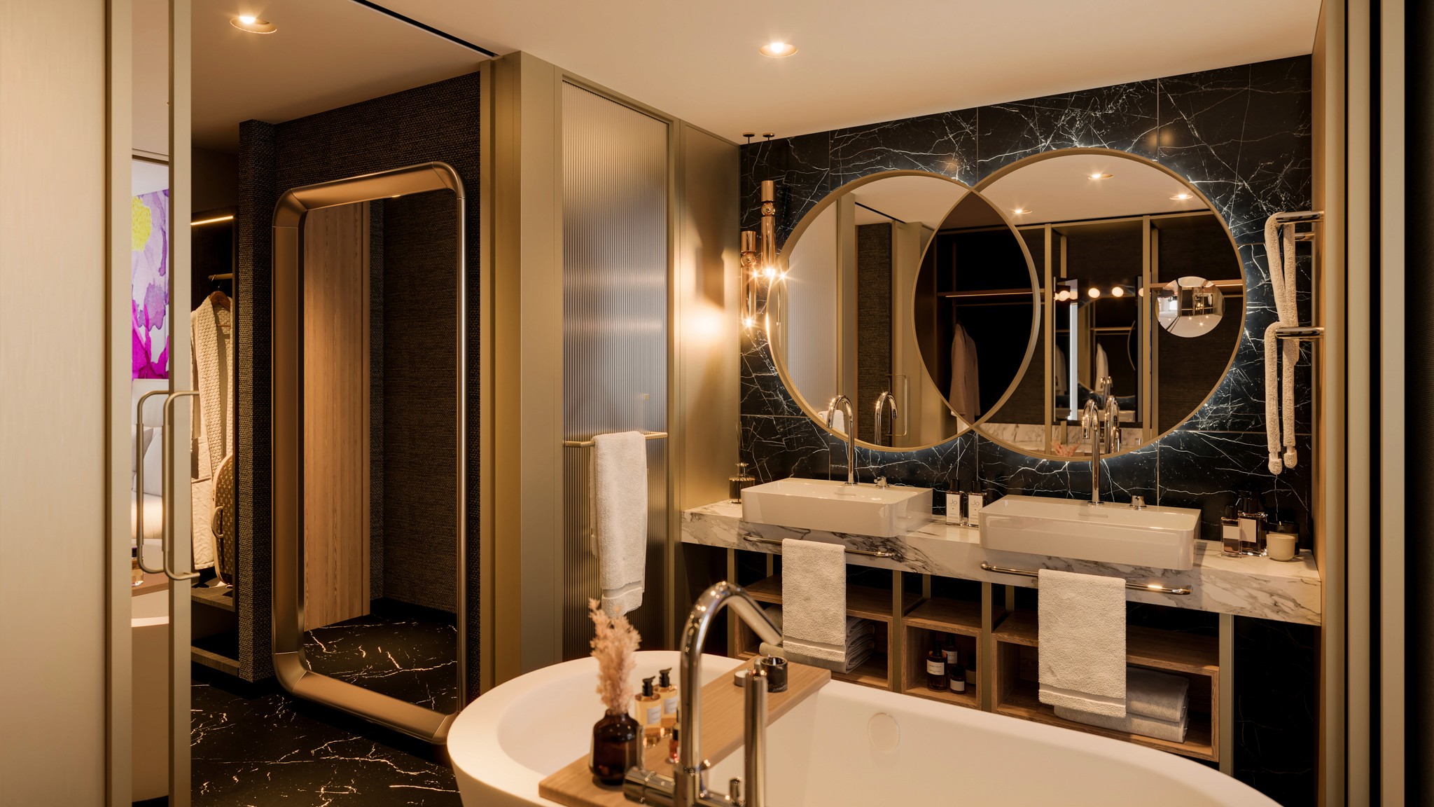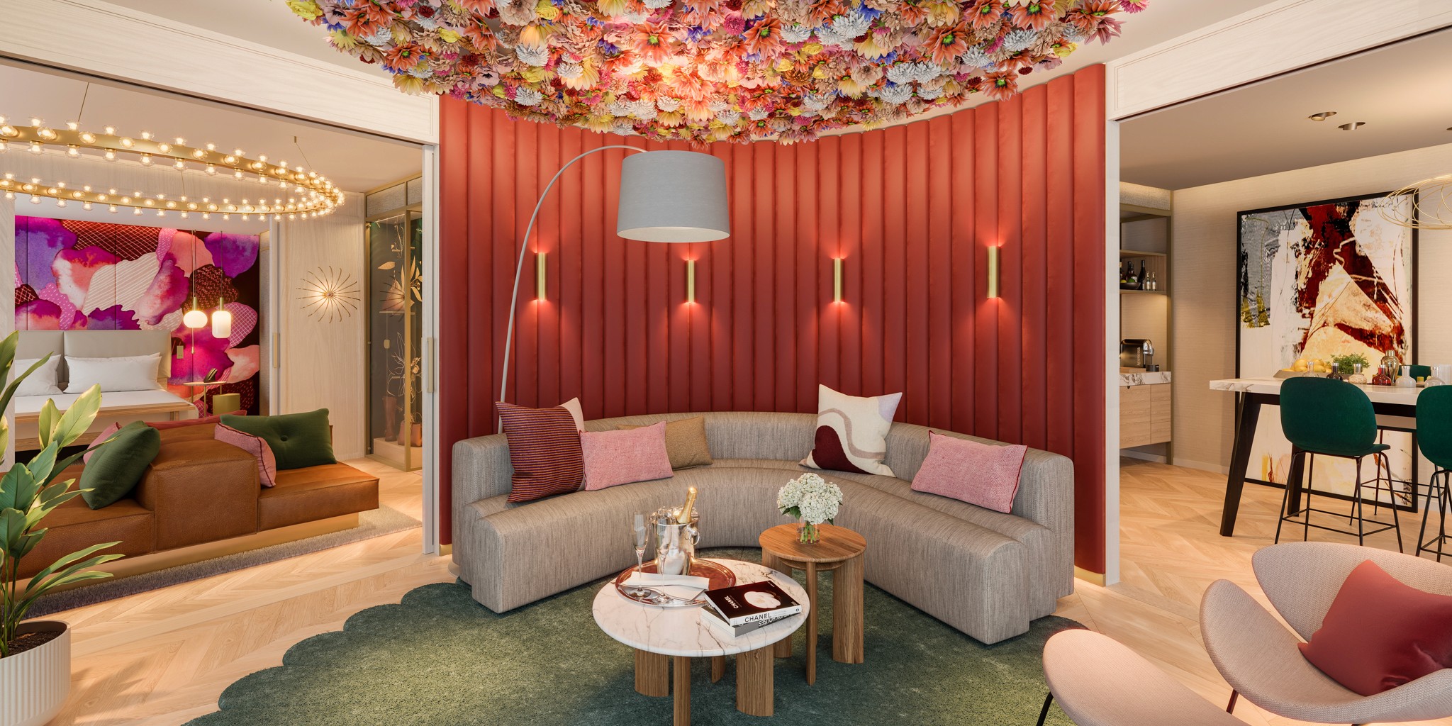 Set of visuals covering exterior, lobby, multiple bedrooms and suites.