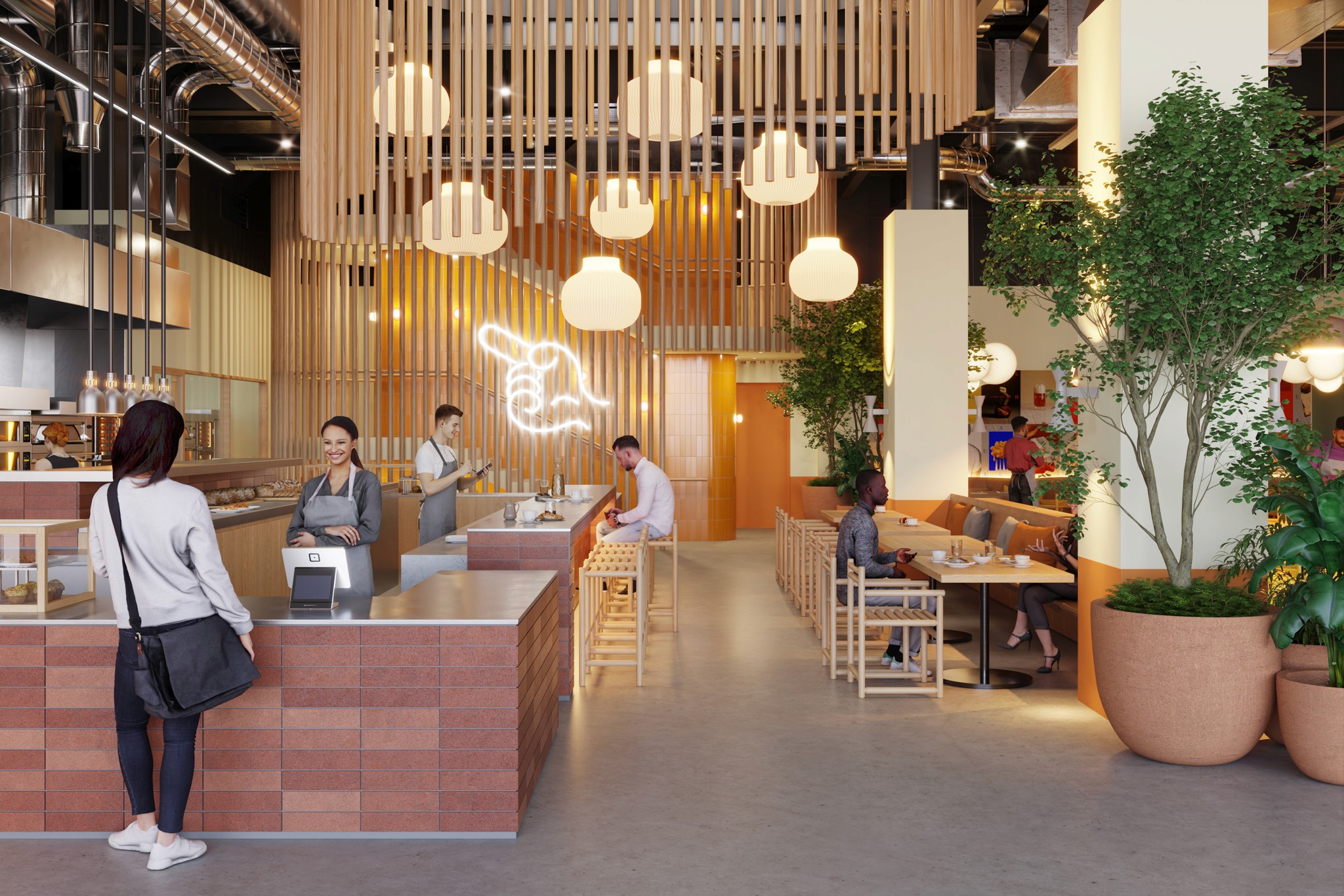 Meticulously rendered common spaces and dining areas, capturing the ambiance and function of the upcoming venue.